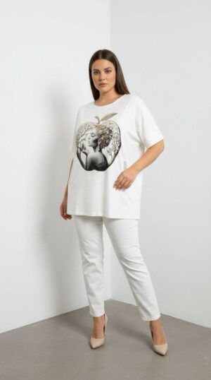 Women’s Graphic Print Oversized Black Batwing Blouse