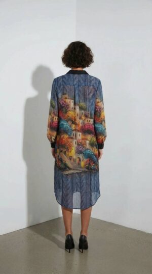Artistic Landscape Print Shirt Dress