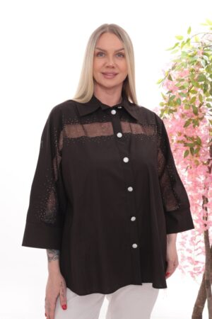 Wholesale Rhinestone Embellished Sheer Panel Tunic Shirt