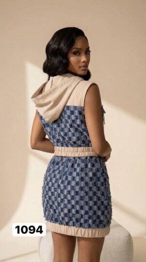 Premium Sleeveless Checkered Tunic Jacket with Hood