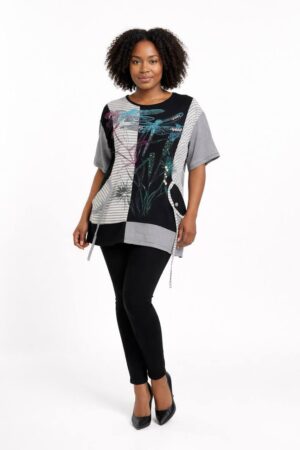 Oversized Graphic Print Blouse with Sequin Accents
